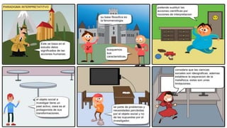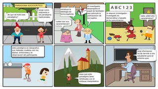 Este documento define el término paradigma y describe tres paradigmas en educación: el positivista, el interpretativo y el sociocrítico. El paradigma positivista se basa en la formulación de hipótesis y verificación cuantitativa, el interpretativo en el estudio de significados humanos, y el sociocrítico considera que la educación está influenciada por la ideología y busca mejorar la práctica educativa.