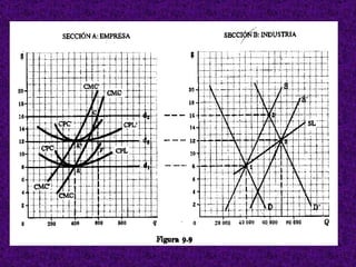 Este documento resume los conceptos clave del mercado de competencia perfecta. Explica que en este mercado hay muchos compradores y vendedores que ofrecen un producto homogéneo, los recursos son perfectamente móviles y hay información perfecta. Las empresas son tomadoras de precios y el precio de equilibrio se determina por la intersección de la oferta y demanda del mercado. También analiza el equilibrio de corto plazo de una empresa competitiva usando los enfoques de costos totales e ingresos y costos marginales.