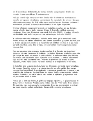 1) El paramo de Santurbán en Colombia alberga una rica biodiversidad y es fuente de agua para millones de personas, pero se encuentra amenazado por proyectos de megaminería para extraer oro.