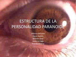El documento aborda la estructura de la personalidad paranoide, caracterizada por desconfianza, agresividad, e ideas de grandeza y persecución, donde la influencia parental juega un papel fundamental. Se describen rasgos clínicos y conductuales de individuos con esta personalidad, así como la importancia de la comunicación directa en el consejo pastoral. Se enfatiza la necesidad de analisis emocional y la influencia de experiencias infantiles en esta condición psicológica.