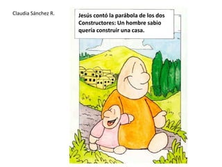 Jesús contó la parábola de dos constructores: un constructor sabio construyó su casa sobre roca después de excavar profundos cimientos, mientras que un constructor insensato construyó su casa sobre arena para evitar trabajo pesado; durante una tormenta, la casa sobre roca permaneció en pie pero la casa sobre arena se derrumbó, enseñando que aquellos que escuchan y siguen las palabras de Jesús son como el constructor sabio.