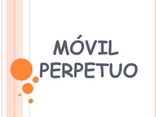 El documento describe la historia del móvil perpetuo, un dispositivo mecánico que funcionaría sin interrupción y produciría trabajo sin consumir energía. Se mencionan varios intentos de crear un móvil perpetuo desde el siglo XIII hasta principios del siglo XX, pero todos violaban las leyes de la termodinámica. El documento también explica brevemente las dos categorías de móviles perpetuos y los físicos que argumentaron su imposibilidad basados en la conservación de la energía.
