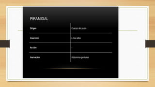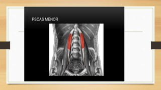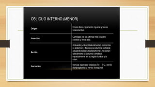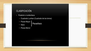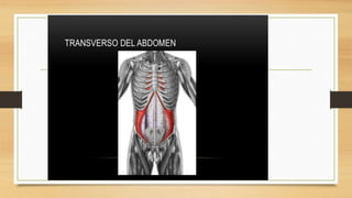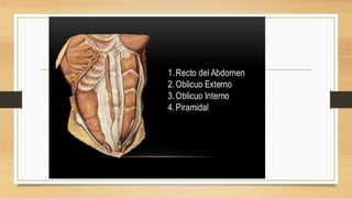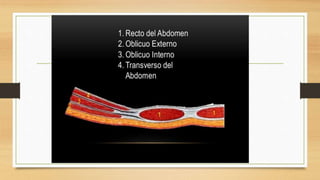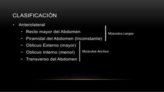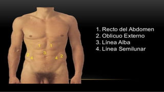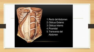 La pared abdominal es el área del cuerpo que rodea y protege los órganos internos del abdomen. El documento brevemente menciona al Dr. Oscar Quispe, residente de neurocirugía, y agradece al lector por su atención.