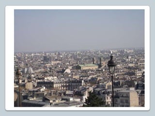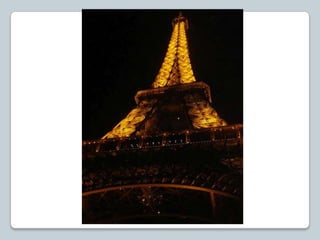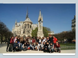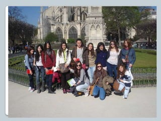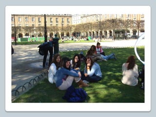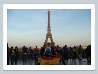 El documento resume un viaje a París, mencionando lugares como el Aeropuerto de Valencia, el Canal de San Martín, la Plaza de Vosgos, el Centro Pompidou, Notre Dame, el Museo de Orsay, la Defensa, el Moulin Rouge, Montmartre, la Ópera Garnier, el Sena, los puentes y los quais, el Museo del Louvre, los Jardines de las Tullerías, la Puerta del Rique, la Madeleine, los Campos Elíseos, el Arco del Triunfo, el Bateau Mouche,