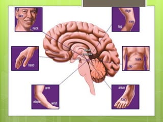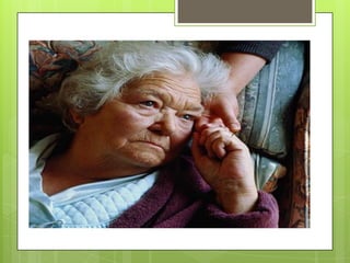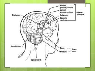 El documento describe la enfermedad de Parkinson, incluyendo su historia, síntomas, causas, diagnóstico y tratamiento. La enfermedad de Parkinson se caracteriza por temblores, rigidez muscular y dificultad para caminar, y se debe a la degeneración de células en el cerebro que producen dopamina. El diagnóstico incluye exámenes médicos y de observación, y el tratamiento se enfoca en controlar los síntomas a través de medicamentos y terapia física.
