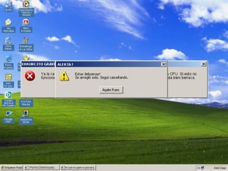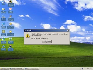 El documento contiene varios mensajes de error de una impresora, indicando que no hay tinta, que el rodillo está manchado de tinta, y que el usuario cometió errores al usar la impresora. Le pide al usuario que compre tinta original, otra impresora, o que deje de ser tan descuidado con el equipo.