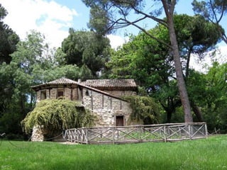El Parque del Capricho en Madrid fue mandado construir por la duquesa de Osuna en el siglo XVIII. Cubre 14 hectáreas y constituye el único jardín romántico que queda en la ciudad. Incluye varias construcciones caprichosas como un laberinto de laureles, un templo dedicado a Baco, un embarcadero con estilo chino y un casino de baile con un pozo de 15 metros de profundidad. Gracias a la duquesa mecenas de las artes, el parque es uno de los jardines más bellos de Madrid a pes