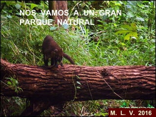 El documento habla sobre un viaje a un gran parque natural con muchas plantas y animales. Explica que un parque natural es un área protegida que preserva la vida silvestre y vegetación nativas, y que la conservación del parque es compatible con el uso sustentable de sus recursos. También menciona algunos parques naturales en España y describe brevemente las características y ciclo de vida básico de plantas y animales.