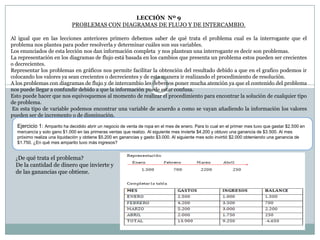 Este documento trata sobre problemas con diagramas de flujo y de intercambio. Explica que estos diagramas se basan en los cambios crecientes o decrecientes de un problema y que representar los problemas gráficamente facilita la obtención de resultados. También señala que hay que prestar mucha atención a este tipo de problemas para no confundirse con la información. Por último, menciona que en este tipo de variables los valores pueden incrementarse o disminuirse según cómo se añada la información.