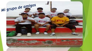 Las personas en la imagen forman parte de un grupo que es fundamental en el desarrollo de los adolescentes. Los grupos de amigos ayudan a desarrollar habilidades sociales y aprender normas y valores. Sin embargo, también existe la presión del grupo que puede influir en los integrantes a tomar decisiones que no quieren para encajar. Es importante mantener la individualidad frente al grupo.