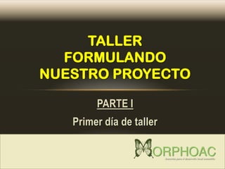 El taller se centra en la formulación de proyectos y la importancia de conocer al donante, la organización y la capacidad para ejecutar el proyecto. Se destaca el trabajo en equipo como esencial para el éxito, y se describen las etapas del proyecto desde su diseño hasta la evaluación final. También se enfatiza la necesidad de definir claramente los objetivos, riesgos y recursos para lograr resultados efectivos.