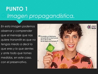 Este documento analiza diferentes estilos publicitarios y elementos de diseño en anuncios. En el punto 1, describe tres anuncios como propagandístico, comercial e institucional. En el punto 2, identifica siete estilos publicitarios basados en la imagen de marca, concursos, imperativos, juegos de palabras, salud, sentidos y naturaleza. El punto 3 analiza esquemas compositivos centrados en la disposición y uso del color. Los puntos 4 y 5 se refieren a anuncios sin titular, eslogan o texto.