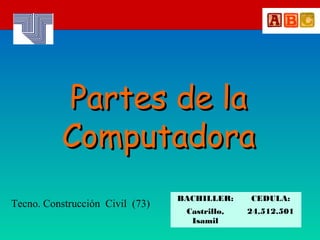 El documento describe las partes principales de una computadora, incluyendo el monitor, la torre, el ratón, el teclado, la impresora y el escáner. Explica que la computadora puede usarse para escribir textos, crear gráficos, calcular, jugar juegos y encontrar información en Internet. También describe cómo la información puede almacenarse en disquetes, discos ópticos, discos duros y otros medios de almacenamiento.