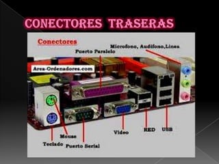 El documento describe la historia y definición de las placas base de computadoras. Comienza explicando que las placas base surgieron en 1947 con el invento del transistor y se han ido miniaturizando y complejizando con el tiempo, llegando a integrar múltiples componentes en un solo circuito. Las placas base contienen componentes como la BIOS, ranuras, zócalos y puertos que permiten la conexión y comunicación de otros dispositivos.