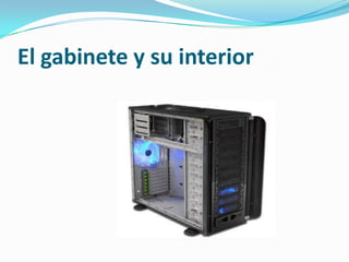 Los principales componentes de un computador incluyen la fuente de alimentación, la placa base, la memoria RAM, el microprocesador, la unidad de disco duro, el monitor, el teclado, el ratón, la tarjeta de sonido, y opcionalmente una unidad de DVD ROM o disquete y una impresora. Estos componentes proveen las funciones fundamentales de almacenamiento, procesamiento y visualización de información en una computadora.