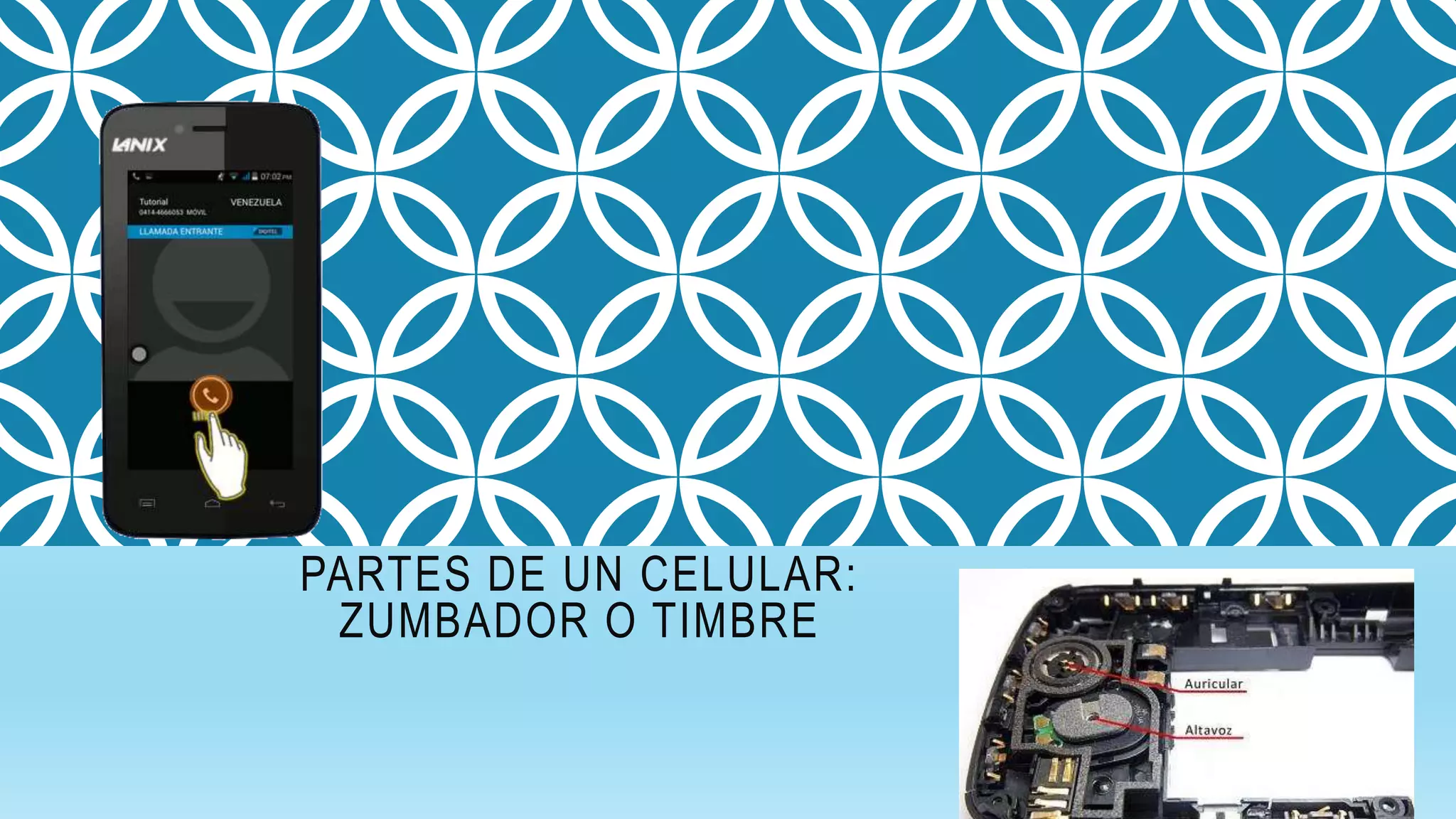 El zumbador o timbre de un celular es un dispositivo que produce sonido al recibir una llamada. Consiste de un electroimán, lámina flexible y martillo unido a una campana. Al cerrar el interruptor, la corriente activa el electroimán atrayendo la lámina y haciendo que el martillo golpee la campana para producir el sonido.