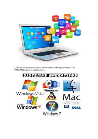 El documento describe las partes internas fundamentales de una computadora. Explica que el hardware son los componentes físicos como el monitor y teclado, mientras que el software incluye programas y aplicaciones como procesadores de texto. El sistema operativo controla el uso del hardware a través de las aplicaciones. También describe los roles clave del procesador y la memoria, incluyendo que la memoria RAM almacena temporalmente programas e información para su uso por el procesador.
