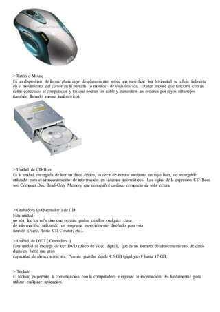 Las partes internas fundamentales de una computadora incluyen el procesador, la memoria y la tarjeta madre. El procesador se encarga de procesar la información y ejecutar instrucciones, mientras que la memoria almacena datos de forma temporal y permanente. La tarjeta madre es la pieza central donde se conectan todos los circuitos electrónicos y componentes.