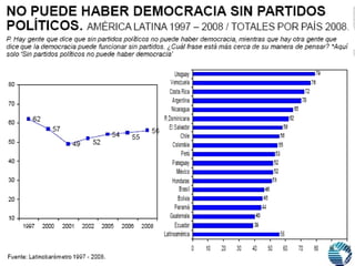 Este documento resume el contexto histórico y político de América Latina y Argentina desde la década de 1970 hasta la actualidad. Luego analiza las características de la participación política de los jóvenes en la década de 1990 y 2000, la cual se caracterizó por ser más horizontal, centrada en acciones concretas y puntuales, y menos institucionalizada que las formas tradicionales. Finalmente, discute los nuevos sujetos políticos juveniles, entre ellos militantes tradicionales e ideologizados y simpatizantes menos comprometidos de