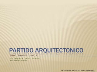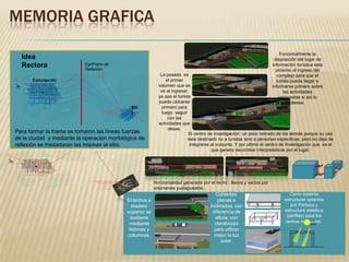 El documento presenta un proyecto arquitectónico para un complejo turístico en Concepción del Yaguareté Corá. El complejo incluye una posada, un centro de interpretación y un centro de investigación dispuestos en torno a un espacio verde central. Los edificios se organizan funcionalmente para guiar al turista a través de las diferentes actividades. El diseño toma elementos formales de la ciudad cercana de Concepción a través de una operación morfológica de reflexión.