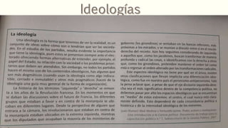 Los partidos políticos son asociaciones de personas con un interés público que representan las solicitudes de los ciudadanos y promueven su participación democrática. Están regulados por la ley y deben cumplir con requisitos como ser un grupo unido por un vínculo, tener una organización estable y ser reconocidos judicialmente. Los partidos políticos tienen ideologías que pueden ser de izquierda, derecha, centro, socialismo o liberalismo y buscan promover la participación democrática y representación ciudadana.