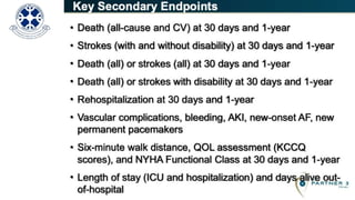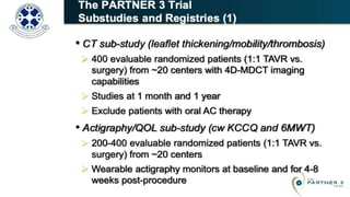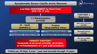 El ensayo PARTNER 3 comparó TAVI frente a cirugía en pacientes de bajo riesgo con estenosis aórtica severa. Los resultados mostraron que TAVI redujo el objetivo primario combinado de muerte, ictus y rehospitalizaciones en un 46% en comparación con la cirugía. TAVI también tuvo tasas más bajas de fibrilación auricular a los 30 días, una estancia hospitalaria más corta y mejores resultados en las pruebas funcionales y la calidad de vida. El estudio proporciona evidencia de que TAVI es una op
