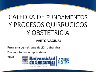 Este documento describe las etapas y procedimientos de un parto vaginal normal, incluyendo contracciones, dilatación del cuello uterino, nacimiento del bebé, extracción de la placenta, y posibles complicaciones. Explica que un parto vaginal es la forma más común de dar a luz cuando no hay complicaciones, y ofrece detalles sobre cada etapa del proceso así como equipamiento necesario y posibles intervenciones médicas.