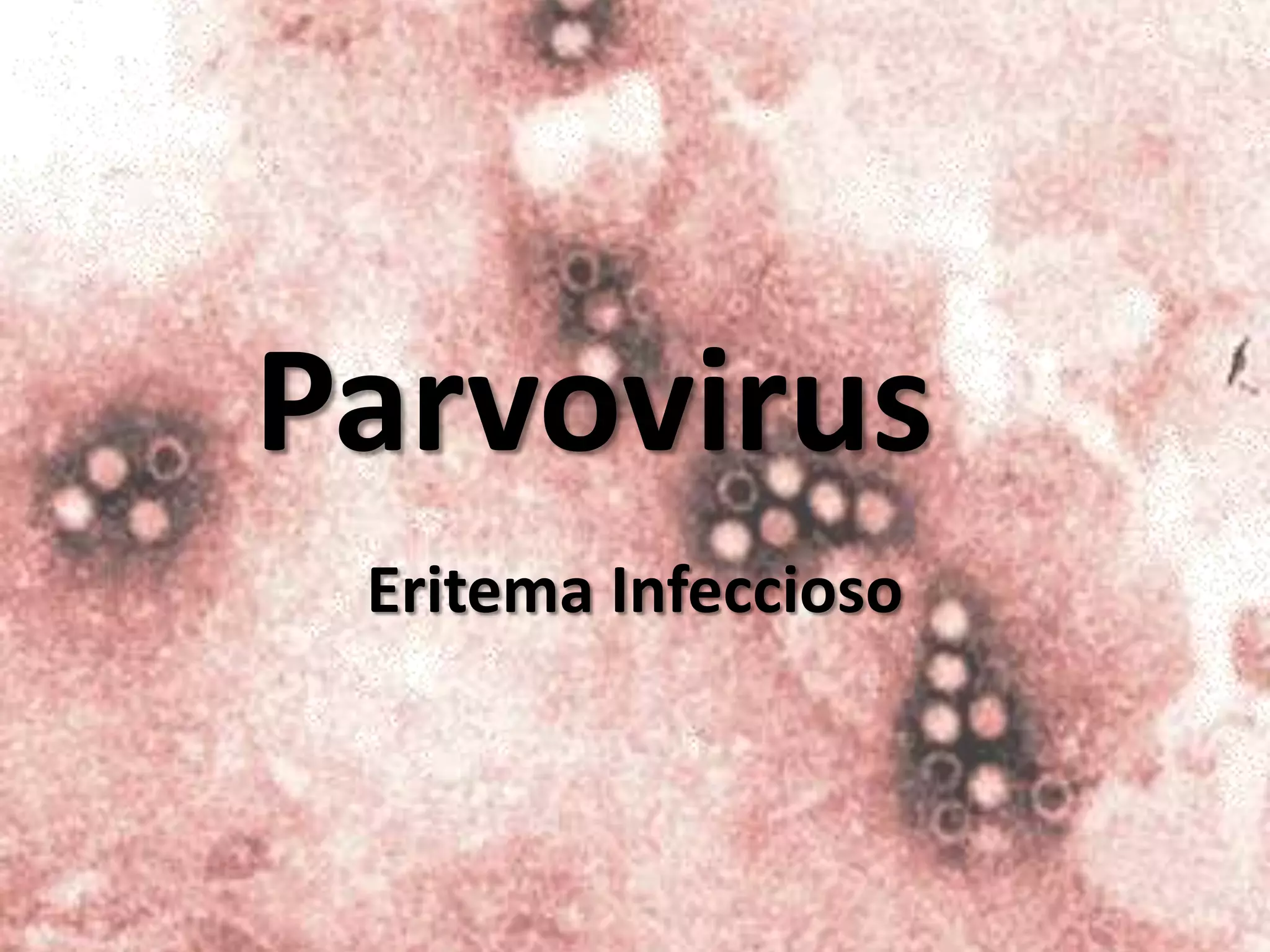 Parvovirus B19 causa la enfermedad conocida como eritema infeccioso o "quinta enfermedad". Se transmite a través de gotitas respiratorias y contacto directo. Causa una erupción cutánea característica en dos fases, así como artritis y anemia aplásica transitoria en algunos grupos. No tiene tratamiento específico, pero la mayoría de los casos son leves y autolimitados. Puede causar complicaciones graves en mujeres embarazadas o personas con ciertas anemias.