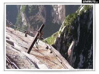 El documento describe un paseo por China que comienza subiendo alto para llegar al inicio del trayecto peculiar. Durante el camino se debe ir con cuidado, agarrarse bien, mirar donde se pisa, estar atento a los compañeros y las vistas. Finalmente, después de subir unos cuantos escalones en la roca, se llega a La Casa del Té.