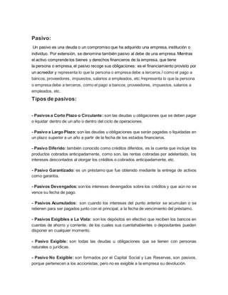 Tipos de pasivos: