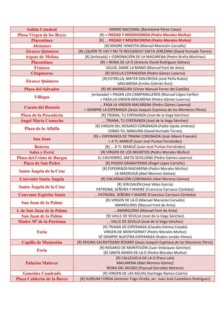 Este documento contiene la lista de marchas y himnos que interpretará la Banda de C.C. y T.T. Veracruz de Utrera durante la procesión de la Estación de Penitencia del Santísimo Cristo de la Misericordia. La lista incluye el nombre de cada pieza musical, su compositor y los lugares donde se interpretará a lo largo de la procesión.