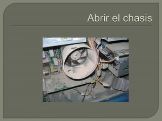 Se realiza una evaluación previa del equipo para registrar su estado físico y funcionamiento. Luego se evalúa el desempeño y estado de las partes para detectar y reparar cualquier falla. Finalmente, se limpia el interior del case del equipo aspirando el polvo y la suciedad, pero sin encenderlo de inmediato, dejándolo abierto por 15 minutos para que salga el químico de limpieza.