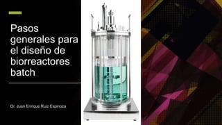 El diseño de biorreactores batch implica pasos como el balance de materia, ecuaciones de velocidad y estequiometría, así como la combinación de estas ecuaciones. Se analizan las fases de crecimiento celular y el comportamiento de síntesis de productos asociados al crecimiento o no crecimiento. Además, se describen factores de no idealidad microbiológicos y físicos que afectan el rendimiento del biorreactor.