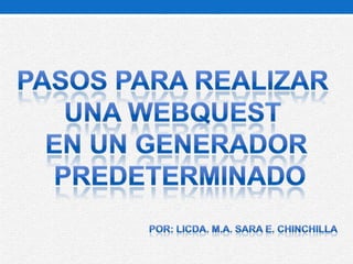 Este documento proporciona instrucciones en 7 pasos para crear y guardar un Webquest usando el sitio web Aula21.net. Incluye pasos para ingresar información e hipervínculos, crear el Webquest, guardarlo con un nombre en formato HTML, verificar la carpeta creada, comprimir la carpeta, y felicitar al usuario por haber guardado correctamente su página aunque solo pueda visualizarse localmente como documento.