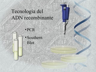 La reacción en cadena de la polimerasa (PCR) permite amplificar grandes cantidades de segmentos específicos de ADN mediante la repetición cíclica de calentamiento, enfriamiento y alargamiento. La PCR utiliza cebadores, nucleótidos, ADN molde y la enzima Taq polimerasa para sintetizar copias del fragmento de ADN de interés, lo que permite su detección e identificación. La PCR ha revolucionado la biología molecular al permitir el análisis de ADN incluso a partir de pequeñas cantidades de m