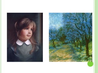 El pastel al óleo es una técnica pictórica seca compuesta de pigmentos, yeso y cola mezclados en una pasta que se modela en barras. Proporciona colores intensos y luminosos sin necesidad de pinceles o diluyentes. Se usa en papel o tela y fue adoptado por los impresionistas por la calidad de sus matices.