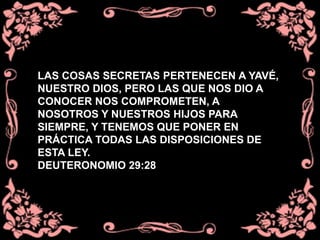 Este documento contiene tres citas bíblicas que enfatizan la necesidad de concentrarse en lo que Dios ha revelado y no buscar conocer lo que está oculto o excede nuestra comprensión. La primera cita del Deuteronomio dice que debemos obedecer las leyes que Dios nos dio a conocer. Las otras dos citas del Eclesiástico aconsejan no tratar de saber lo que está más allá de nuestras capacidades y no cansarse resolviendo cuestiones inútiles, sino enfocarse en la enseñanza que ya ten