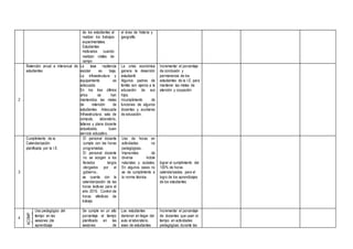 El documento presenta un diagnóstico institucional y plan anual de trabajo para el año 2015 de una institución educativa. Se identifican 8 compromisos principales con sus fortalezas y debilidades. El objetivo general es planificar, programar, organizar, ejecutar y evaluar las actividades pedagógicas, administrativas e institucionales para el año 2015 para mejorar los aprendizajes de los estudiantes. Se establecen objetivos específicos por nivel educativo y se define el alcance, marco legal y diagnóstico institucional.