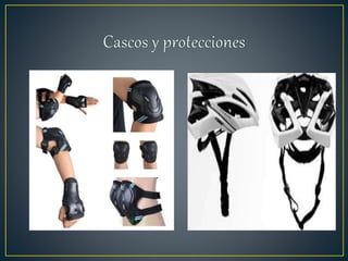 El documento proporciona información sobre diferentes tipos de patines de fitness y sus usos. Detalla las características y recomendaciones de patines de fitness básicos, patines de freeskate y patines de velocidad. También incluye tablas sobre el diámetro de la rueda recomendado según la edad y sobre los materiales y altura del cuello de diferentes niveles de patines.
