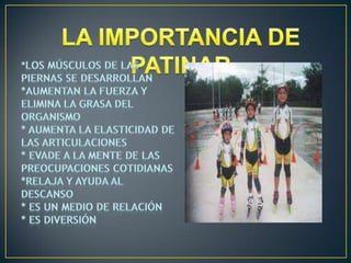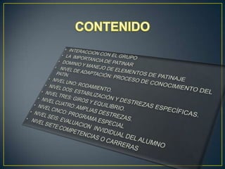 Este curso de patinaje busca fomentar el placer de patinar en niños de todas las edades a través de clases que combinan diversión sobre ruedas con la enseñanza básica de la técnica del patinaje mediante juegos y ejercicios. Un objetivo adicional es reducir el sedentarismo en los niños a través de la práctica del patinaje.