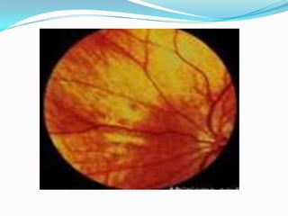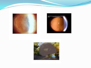 Este documento resume varias patologías visuales asociadas a la baja visión, incluyendo la degeneración macular asociada a la edad, el glaucoma, la retinopatía diabética, las cataratas y la retinosis pigmentaria. Describe los síntomas, tratamientos, limitaciones y ayudas disponibles para cada una de estas condiciones.
