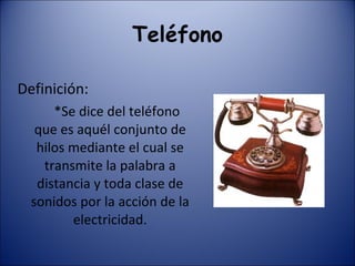 El documento describe la historia y evolución de varias tecnologías de comunicación como el telégrafo, teléfono y radio. Explica los inventos clave como el telégrafo óptico, sistema Morse, telégrafo, télex y belinógrafo, así como los dispositivos electrónicos fundamentales como el diodo, triodo y transistor que permitieron el desarrollo de estas tecnologías.