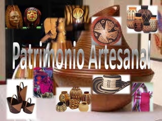 Este documento describe las artesanías tradicionales del departamento de Quindío en Colombia. Inicialmente, los habitantes elaboraban objetos para el uso cotidiano a partir de materiales como cuero, bejuco, madera y barro. Con el tiempo, las artesanías se han ido hibridando con elementos de la industria y la tecnología moderna. Una de las artesanías más conocidas es el arte de la totuma llamado "tarralí", caracterizado por pinturas y grabados en la curva del fruto. Otra artesanía tradicional es
