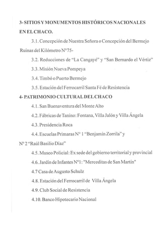ECHARRI, Fabio Javier (2007). "Patrimonio Cultural del Chaco". Subsecretaría de Cultura. Gobierno de la Provincia del Chaco