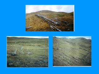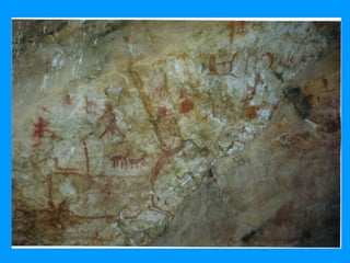 El documento presenta información sobre el patrimonio cultural de la comunidad de Tambopampa en Perú. Describe la historia del nombre de la comunidad, sus fiestas tradicionales como el carnaval y la semana santa, y sus dos fiestas patronales en mayo y octubre. También detalla las creencias locales sobre temas como el matrimonio, la muerte, el arcoíris y más. Finalmente, presenta varias rutas turísticas en la comunidad que incluyen sitios arqueológicos con pinturas rupestres y restos óseos.
