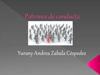 Este documento describe diferentes patrones de conducta que pueden presentarse como predisposiciones estables en los sujetos. Describe patrones como la impaciencia, urgencia, competividad y hostilidad. También identifica tipos de patrones como desorden, quiebra, indispensabilidad, cambio de empleo, dramáticos, accidentes y enfermedad. El documento analiza estas características y tipos de patrones de conducta.