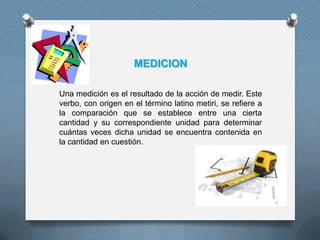 El documento describe diferentes tipos de patrones de medición y su aplicación en ingeniería. Explica que los patrones internacionales son definidos por acuerdos internacionales y representan unidades de medida con la mayor precisión posible. Los patrones primarios se encuentran en laboratorios nacionales y representan unidades fundamentales. Los patrones secundarios son usados en laboratorios industriales y se calibran con patrones de referencia. Finalmente, el documento detalla diversos instrumentos de medición utilizados por ingenieros como metros, niveles láser y teodolitos.