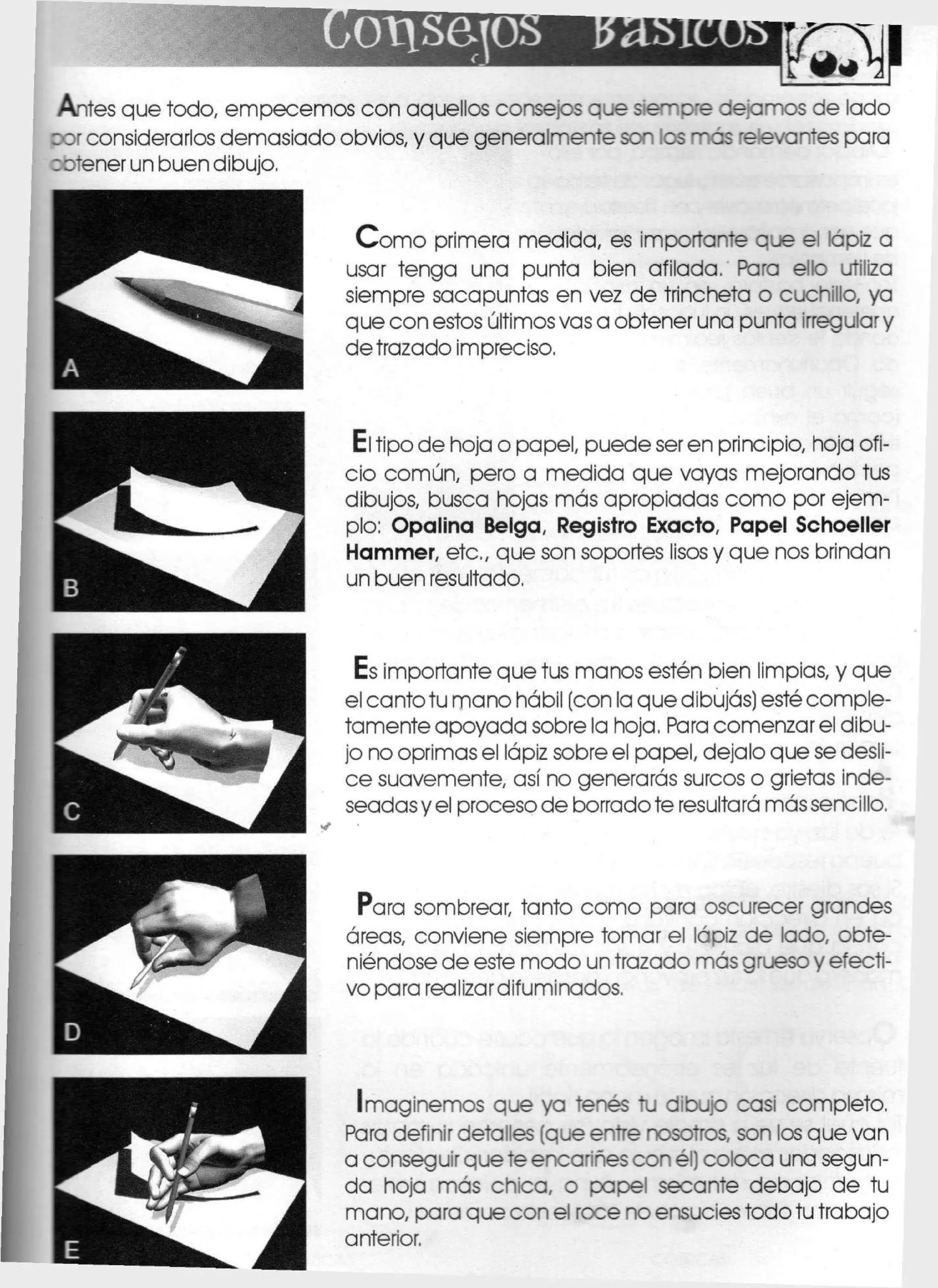 Este documento ofrece consejos para mejorar el dibujo, incluyendo usar lápices afilados, hojas de papel adecuadas, mantener las manos limpias y apoyadas, y usar la luz correctamente. También cubre temas como la importancia de un espacio de trabajo cómodo y bien iluminado, y cómo construir dibujos usando figuras geométricas básicas.