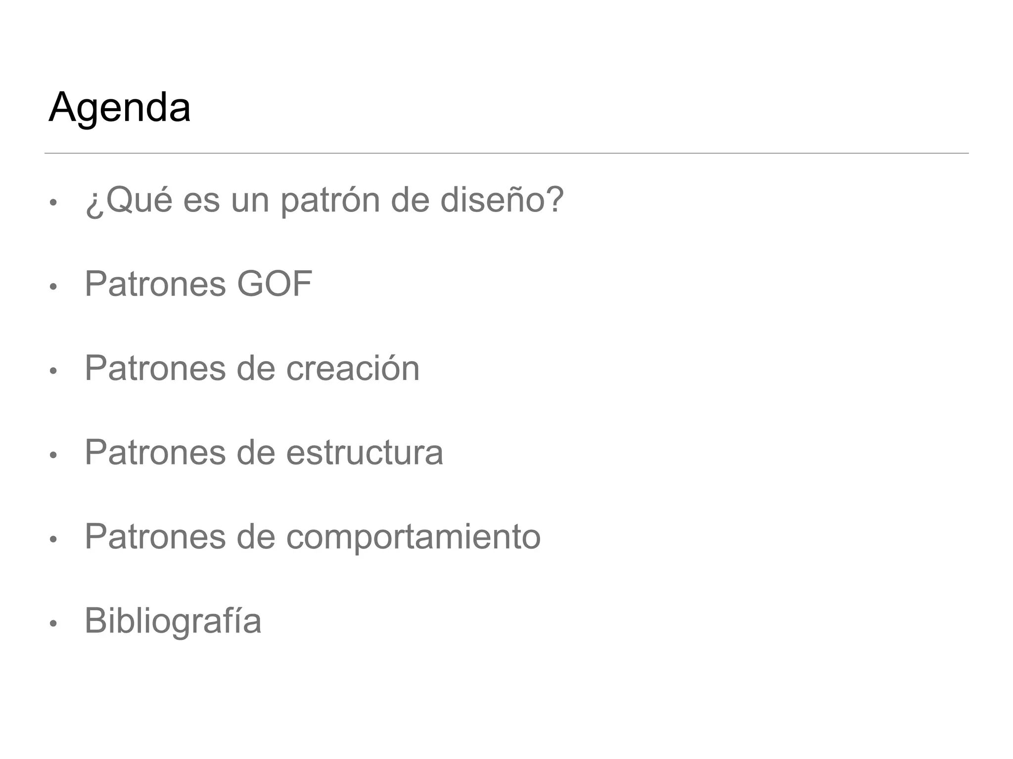 Este documento presenta una introducción a los patrones de diseño de software conocidos como patrones GOF. Explica brevemente qué es un patrón de diseño y clasifica los patrones GOF en tres categorías: patrones de creación, estructura y comportamiento. Luego describe algunos patrones específicos como Factory Method, Observer y Strategy. Finalmente incluye una bibliografía sobre el libro original de los patrones GOF.