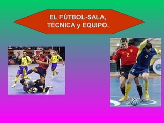El fútbol sala nació en Uruguay en 1930 cuando Juan Carlos Ceriani creó unas reglas para adaptar el fútbol a espacios más pequeños. Se juega entre dos equipos de 5 jugadores en una cancha de 40x20 metros con porterías más pequeñas. Cada equipo intenta anotar goles mientras evita que el otro equipo marque. El partido consta de dos tiempos de 20 minutos con un descanso de 10 minutos.